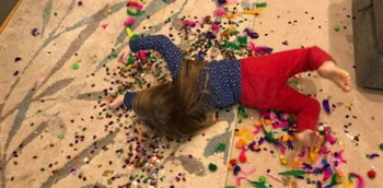Bayangkan jika bahan-bahan kerajinan tangan Anda disebar ke seluruh ruangan, dan dia berguling-guling di atasnya. Padahal, dia hanya ditinggal 30 detik lamanya.