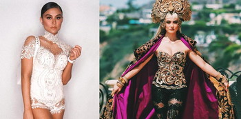 Di foto ini memang tidak terlalu terlihat model kebaya yang dikenakan Agnes. Namun, dari bustier yang tertangkap di kamera, sepertinya ini adalah model kebaya yang seksi, sesuai dengan gaya sang penyanyi. Outer motif batik dan headpiece yang dikenakannya menambah cantik penampilan Agnez.