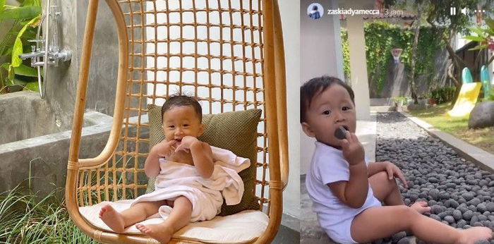 Dalam unggahan tersebut, putra terakhir Zaskia Adya Mecca tampak bermain batu di teras rumah.