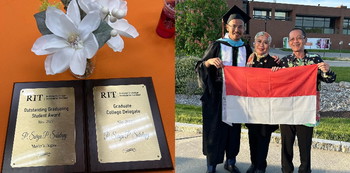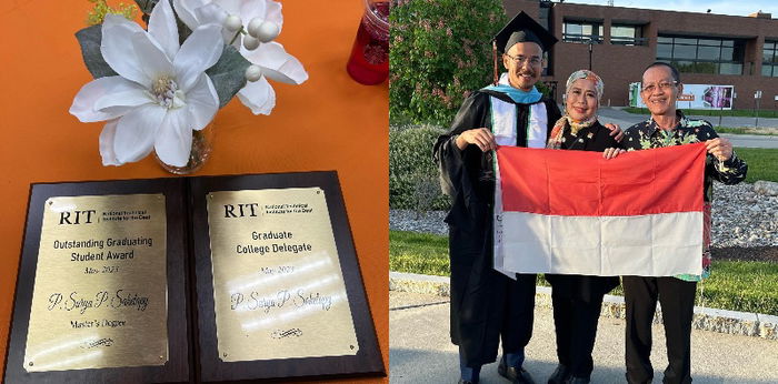 Di wisuda S2 kali ini Surya lulus dengan meraih 3 penghargaan sekaligus yaitu International Student Outstanding Service Award, The Outstanding Graduating Student Award In The Master’s Degree, dan NTID Graduate College Delegate.