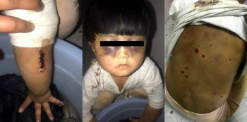 Menurut laporan, salah seorang kerabat yang sedang berkunjung melihat kondisi anak dipukul ayahnya tersebut dan memotretnya.