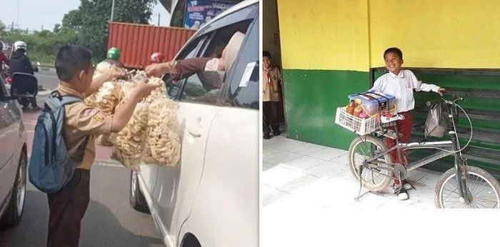 Mengutip dari akun Instagram @dramaojol.id, seorang bocah yang masih bersekolah terlihat menjajakan dagangannya di lampu merah. Saat sekolah masih tatap muka, ia nampak mengenakan seragam pramuka, menawarkan dagangan ke kendaraan yang berhenti di lampu merah.