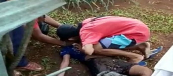 Menegaskan kalau tangan korban, anak lelaki yang menggunakan kaus biru itu terlihat sulit dilepaskan dari tiang karena kesetrum aliran listrik yang menyengat.