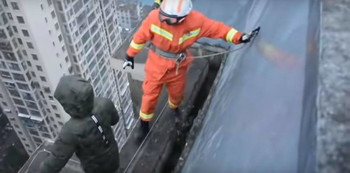 Upaya bunuh diri ini terjadi di Cina. Pekerja konstruksi yang sedang bekerja di atas gedung melihat seorang bocah laki-laki berdiri sangat dekat di tepi sebuah gedung berlantai 33.