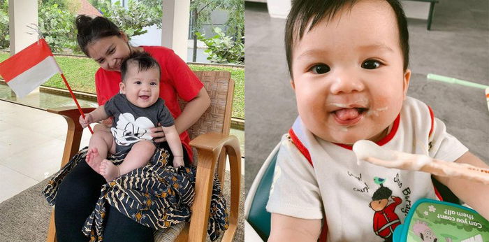 “Jadi kalau Iago lihat momom makan, sudah ngiler banget, akhirnya pas 5 bulan momom iseng tanya sama dokter boleh ga Iago dikasih makan. Dokter bilang boleh, asal porsinya sedikit seperti icip-icip rasa gitu,” lanjutnya bercerita.