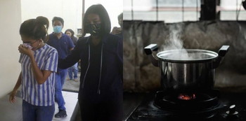 Merasa kesal dan terbawa emosi, AF segera menyiramkan air mendidih ke badan ibunya. Terang saja, ibunya berteriak kesakitan.