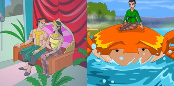 Sementara itu Klenthing Abang, Klenthing Ijo, dan Klenthing Biru bermaksud untuk pergi ke Desa Dadapan. Mereka harus menyeberangi sebuah sungai terlebih dahulu, namun tak terlihat satupun perahu yang bisa mengangkut mereka.