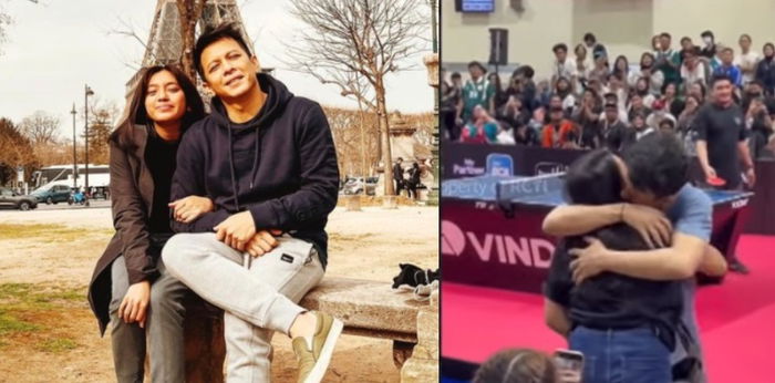 Baru-baru ini penyanyi tampan Ariel Noah kembali menyita perhatian publik dalam momen pertandingan pingpong yang diselenggarakan oleh Vindes. Dalam kesempatan tersebut, tampak momen manis Ariel Noah peluk dan cium anak semata wayangnya, Alleia Anata. Hal ini pun sontak menjadi sorotan netizen yang ikut ‘baper’ melihatnya.
