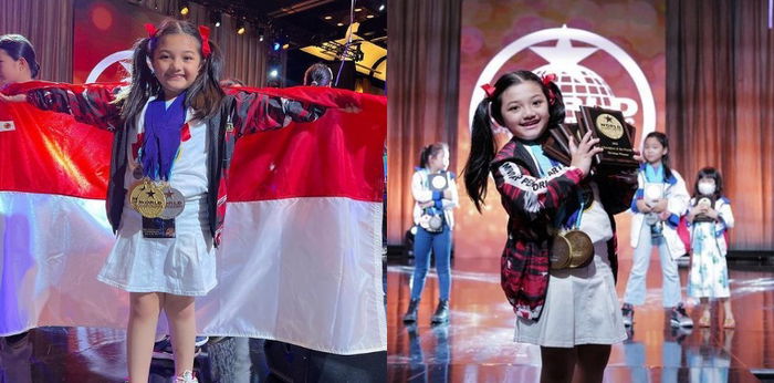 “Alhamdulillah total Arsy bawa 14 penghargaan. Bangga liat bendera Indonesia berkibar, bangga dengan peserta Indonesia yg lain hebat-hebat semua, terima kasih semua doa dan support-nya,” tulis pada keterangan foto.