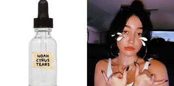 Ternyata tetesan air mata Noah Cyrus dijadikan merchandise. Air mata Noah Cyrus laku sekitar USD 12 ribu atau setara dengan Rp178 juta pada saat itu.