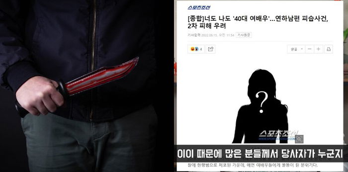 Beberapa hari terakhir masyarakat Korea dihebohkan dengan kabar seorang artis korea ditikam suami. Dari kabar yang beredar di dunia maya, seorang aktris berusia 40-an menjadi korban percobaan pembunuhan oleh suaminya yang lebih muda. Seorang terduga tersangka seorang aktor berusia 30-an kabarnya juga telah ditangkap pada pada Selasa (14/6/2022).