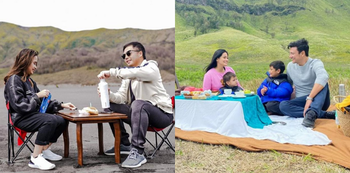 Keduanya tampak berfoto dengan latar belakang Gunung Bromo saat pagi hari. Keluarga Titi Kamal juga menikmati sarapan bersama di tengah hamparan sabana yang ada di Gunung Bromo.