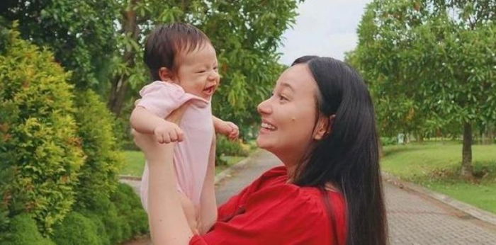 Potret Asmirandah yang tampil natural saat berjemur bersama sang putri mendapat banyak pujian. Kecantikannya memang asli dan natural ya.