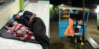 Seorang pengguna Facebook bernama Egha Abdi mengunggah sebuah foto yang mengharukan. Foto tersebut memperlihatkan seorang ayah yang sedang tidur di emperan masjid bersama anak perempuannya. Ayah ini membawa anaknya saat jualan bakso keliling.