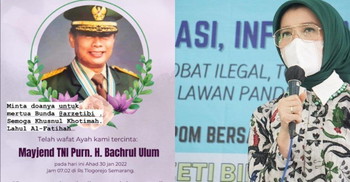 “INNA LILLAHIA INNA ILLA WIHI ROJI’UN. Telah wafat Ayah kami tercinta Mayjen Pur.Bachrul Ulum pada hari ini Ahad 30 Januari 2002 jam 7.02 di Rumah Sakit Tlogorejo Semarang,” bunyi pesan tersebut mengutip Akurat.