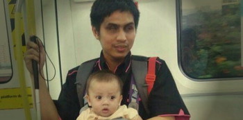 Ayah hebat itu bernama Muhamad Firdaus bin Hairi (29). Ia dan istrinya Noor Hidayah binti Ibrahim sama-sama buta.