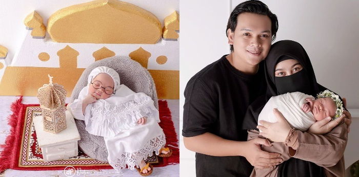 Zakia tampak lucu dalam balutan mukena putih, dan berkacamata. Kata Bunda Wardah di unggahan Instagramnya, konsep newborn photoshoot memakai mukena ini karena ingin Kia menjadi Bu Hajjah kelak.
