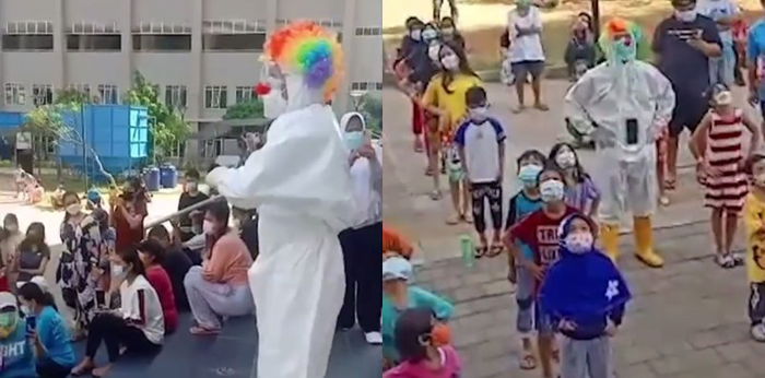 Selain orang dewasa dan lansia, kita seringkali lupa bahwa anak-anak juga bisa menjadi korban dari paparan virus COVID-19. Tak sedikit pula pasien yang masuk ke dalam kelompok usia anak dirawat di Wisma Atlet Kemayoran. Menariknya, Wisma Atlet menggelar aksi badut untuk hibur pasien anak COVID-19.