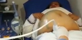 Ibu ini tampak kesakitan karena gerakan bayi terlalu ekstrem. Bahkan saat di USG, monitor tak dapat membaca pergerakan bayi yang amat heboh ini.
