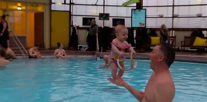 Ternyata bukan. Sebuah pusat kebugaran khusus bayi di Islandia adalah penyebab dari para bayi yang berdiri tegak di usia 4 bulanan ini. Pelatihnya adalah Snorri Magnusson yang secara khusus mengajari bayi agar bisa berenang dan berdiri sejak dini.