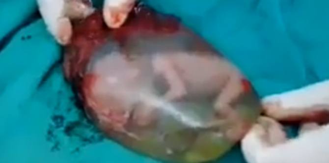 Bayi masih dalam ketuban itu tetap hidup dan bergerak meski berada di luar rahim. Simak videonya berikut ini.