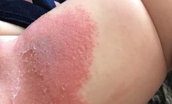 “Dia menangis keras, dan kulitnya mengelupas. Ruamnya terus menyebar hingga ke bagian paha. Tubuhnya terayun ke sana kemari karena dia merasa sangat tidak nyaman,” Rebekah menjelaskan.