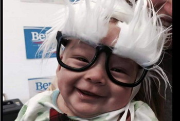 Dalam beberapa foto, bayi ini terlihat tersenyum lucu dan menggemaskan. Dia juga sempat bertemu dan berfoto bersama sang kandidat, Bernie Sanders.