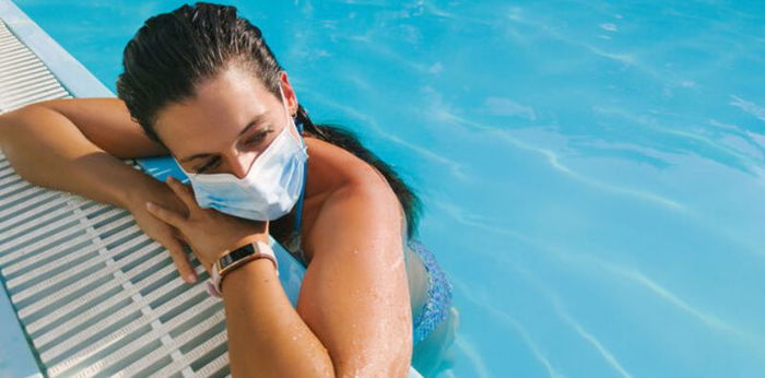 - Jika tidak sedang berada di dalam kolam atau sedang berenang, tetap gunakan masker.