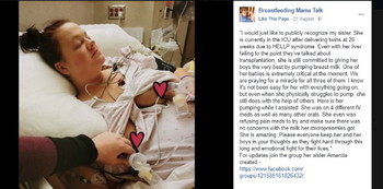 Kabar tentang kondisi Melissa yang kritis usai melahirkan namun tetap memberikan ASI pada bayinya ini disebar lewat akun Facebook Breastfeeding Mama Talk dan jadi viral di internet.
