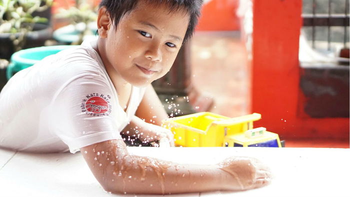 Ya, tidak mungkin, dong, tetap memaksakan bilang iya saat anak main hujan-hujan, merasakan shower terbesar dan alami, jika kondisi anak sedang tidak fit?