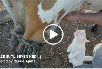 Hal ini berlangsung cukup lama dan terlihat kucing yang menjilat air susu sapi yang diarahkan langsung ke mulutnya. Sang tuan kemudian memeras susu sapi kedua kalinya dan memberikan pada kucing putih tersebut. Kucing tampak asyik menikmati susu sapi langsung dari asalnya ini dengan menunjukkan ekpresi mata sedikit terpejam.