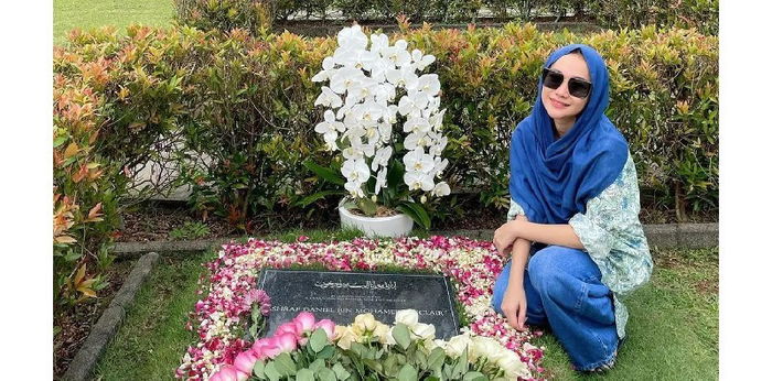 Namun, tak terlihat kehadiran buah hati mereka, Noah Sinclair, di makam sang ayah. Padahal, biasanya ibu dan anak ini ziarah ke makam Ashraf bersama-sama.