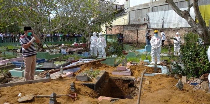 Prosesi pemakaman dengan protokol Covid-19. Foto: tempo.co