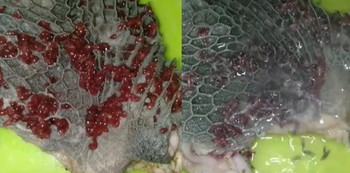 “Nah, yang berwarna kemerahan bentuknya seperti boba itu disebut dengan ruman flukes (paramphistomosis),” kata Chef Nausa. Namun menurut seorang dokter hewan bernama Rama, cacing merah itu disebut conical flukes.