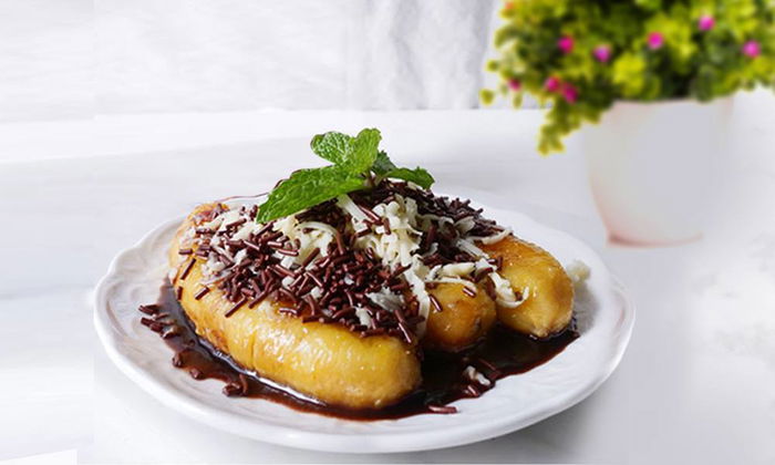 - Angkat pisang goreng yang sudah matang, lalu tiriskan. Tambahkan kental manis coklat di atas pisang goreng yang sudah matang agar rasanya semakin nikmat.