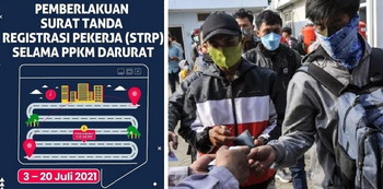 Selama Pembatasan Kegiatan Masyarakat (PPKM) Darurat berlangsung pada 3-20 Juli 2021, masyarakat yang berada di luar Jakarta tidak diperkenankan masuk ke Ibu Kota. Jika ingin keluar-masuk berkenaan dengan pekerjaan, mereka harus memiliki surat tanda registrasi pekerja (STRP). Begini cara buat STRP melansir dari Kompas.com.