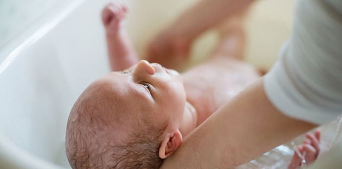 - Air untuk memandikan bayi dengan suhu hangat. Cek dengan tangan sebelum dipakai memandikan bayi.
