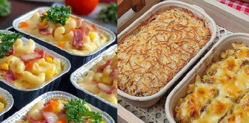 - Masukkan makaroni ke dalam wadah aluminium foil lalu beri topping. Panggang makaroni hingga matang dengan suhu 175°C api atas rak tengah selama kurang lebih 20 menit.