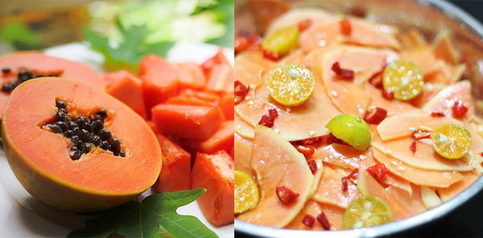 - Pisahkan pepaya dan rendaman air kemudian rebus air rendaman sampai agak kental. Selanjutnya, rendam kembali pepaya selama satu malam.