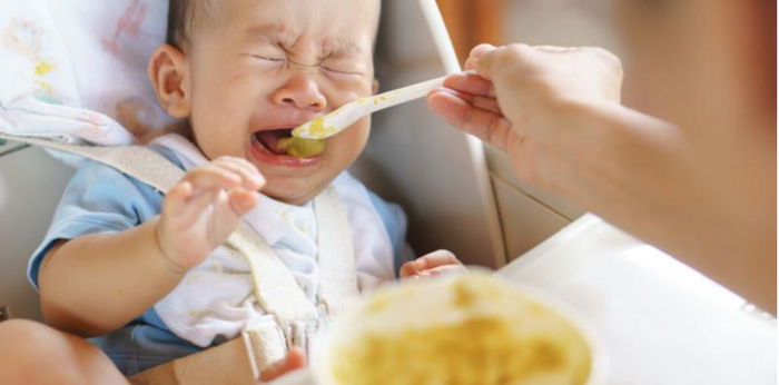 GTM pada Si Kecil dapat ditandai dengan menutup mulut yang rapat pada saat sedang Bunda suapi, menyemburkan makanan, hingga mengeluarkan kembali makanan yang sudah masuk ke dalam mulutnya.