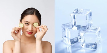 Suhu dingin dari es batu dapat mengontrol peradangan pada jaringan kulit. Oleh dari itu, es batu sangat cocok untuk menghilangkan kantung mata. Caranya mudah, bungkus es batu dengan handuk bersih kemudian kompres mata yang bengkak selama 10 menit. Jika kulit terasa nyeri karena dingin, lepaskan dahulu kemudian kompres lagi beberapa menit setelahnya.