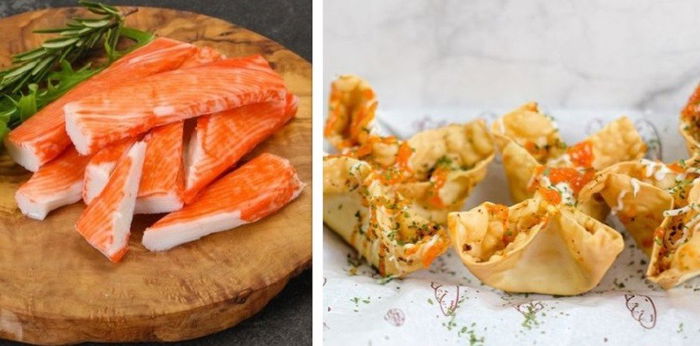 - Siapkan kulit wonton, masukkan adonan kepiting sedikit ke bagian tengahnya, dan lipat. Sebagai perekat Anda bisa menggunakan air atau putih telur.