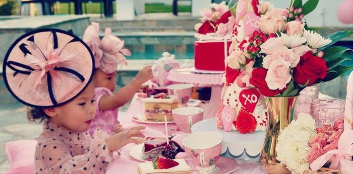Kezia memesan aneka kue cantik yang menjadi pelengkap teh dan cangkir mewah ala Inggris. Meski pesta kecil-kecilan, Kezia tampak mengatur perintilan pesta high tea ini dengan sangat totalitas. Ia juga memesan kue istimewa untuk si kecil. Kezia juga mengatur dekorasi untuk pesta valentine ini agar memiliki warna senada dengan busana mereka.