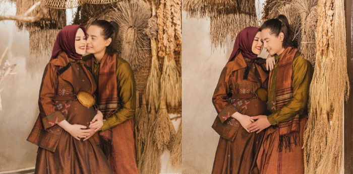 Keduanya pun saling berpelukan bahagia. Sebentar lagi pasangan ini akan kembali dikaruniai anak laki-laki.