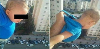 Ia mengatakan hal tersebut sambil mengunggah sebuah foto yang membuat banyak orang geram. Ia memegang kaos balita lelaki di balkon sebuah apartemen lantai 15 di ibu kota Algeria.