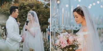 Penampilan yang tak kalah menyita perhatian pun terlihat dari sang mempelai perempuan. Olivia nampak begitu anggun mengenakan gaun putih, senada dengan pakaian yang dikenakan suaminya itu.