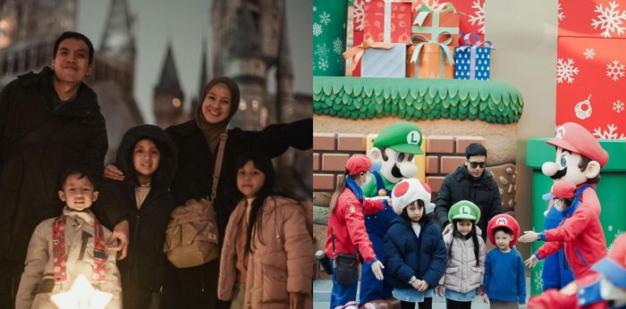 1. Lewat unggahan Instagram Story dan Instagram Post, Natasha Rizky bagikan momen liburan dirinya bersama anak-anak dan mantan suaminya. Di Jepang, mereka berlima berkunjung ke Universal Studio. Seperti yang terlihat di potret satu ini, Natasha begitu bahagia berpose dengan latar bola dunia ikonik milik Universal Studio bersama ketiga anak tercintanya.