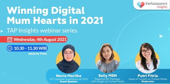 Data-data tersebut disampaikan bersama hasil survei menarik lainnya lewat webinar bertema “Winning Digital Mum Hearts in 2021”, yang dihadiri 100 peserta dari teman media, pelaku usaha (bisnis) dan perusahaan di Indonesia pada Rabu, 4 Agustus 2021 lalu. Digital Mums Survey 2021 sendiri diprakarsai oleh theAsianparent (tAP) Indonesia, salah satu perusahaan di bawah naungan PT Tickled Audience Platform, guna mengetahui perubahan perilaku dalam aktivitas digital para ibu di Indonesia di berbagai platform. Survei diikuti oleh 670 digital mums pada April 2021. Tak hanya di Indonesia saja, Digital Mum Survey juga dilakukan di Singapura, Thailand, dan Filipina.