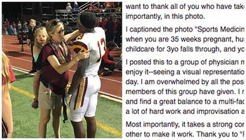 Seorang Dokter umumnya akan lebih mementingkan tugasnya sebagai seorang dokter daripada kepentingan pribadinya. Sama halnya dengan seorang dokter olahraga sekaligus terapis dari Oklahoma City, Amerika Serikat ini. Sebagai seorang dokter olahraga, ia juga berada di lapangan untuk menjaga para atlit. Namun ada yang berbeda dari tersebut hingga membuatnya menarik perhatian dunia. Penasaran dengan penyebabnya? Yuk simak ulasannya disini.