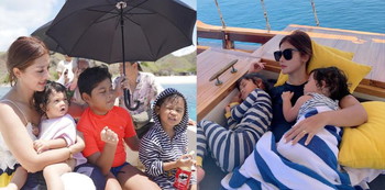 Berikut adalah potret Eva Anindita yang selalu berada di sisi ketiga anaknya, ketika mereka tengah menaiki sebuah kapal kecil di hamparan lautan Labuan Bajo.